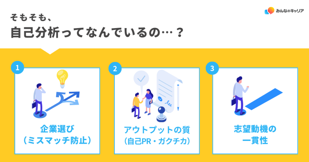 そもそも、なぜ企業はESや面接で「あなたの強みは?」「学生時代に力を入れたことは?」と問いかけ、自己分析の深さを試すのでしょうか。その背景にある目的を、ここでは3つのポイントに分けて整理します。