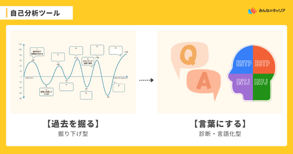 自己分析ツールは、その目的によって大きく2つのタイプに分けられます。まずは自分が「何を知りたいのか」を明確にし、適切なツールを選びましょう。
