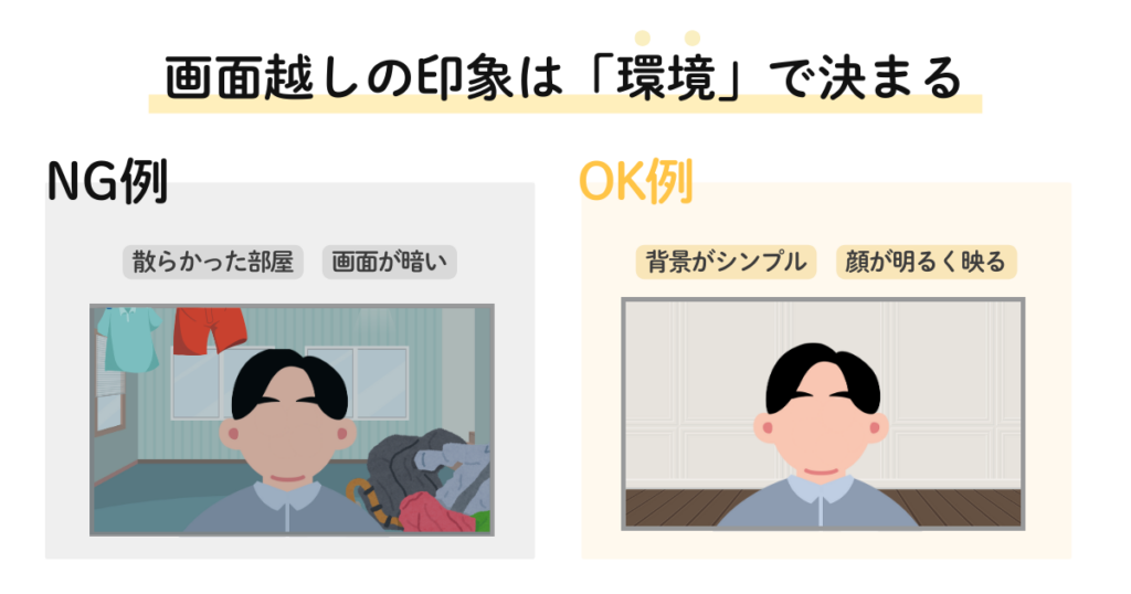 たとえば、通信環境を整えて音声が途切れないようにする、明るい照明で表情を見やすくする、静かな場所を選んで雑音を避ける——これらはすべて、面接官が気持ちよくあなたの話を聞ける環境をつくるための配慮になります。