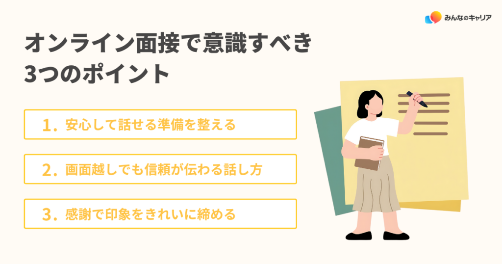 オンライン面接では、「何を話すか」だけでなく、「どう伝わるか」も大切になります。