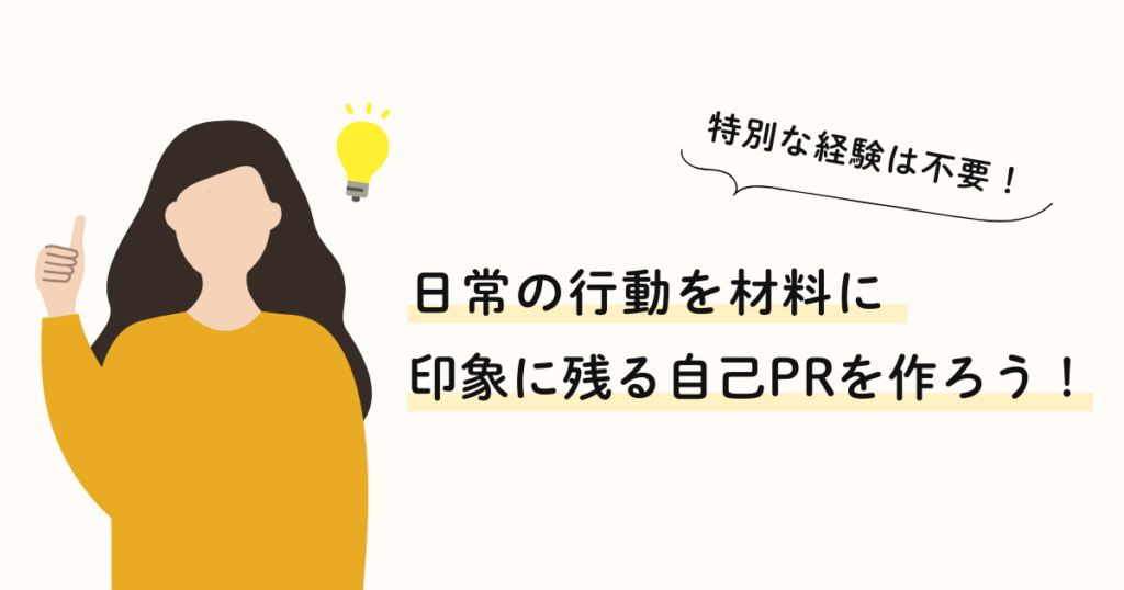 自己PRのネタは、特別なイベントの中だけにあるわけではありません。むしろ、あなたが無意識にやっている習慣やあたりまえと思っている小さな工夫の中に、あなたらしさが詰まっています。