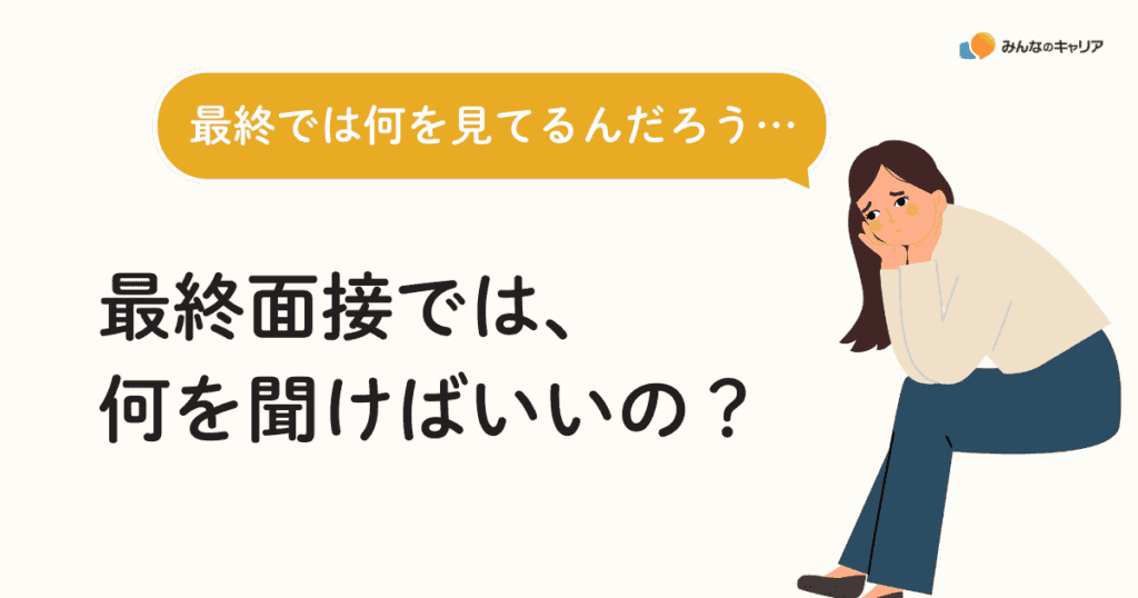 ただし、企業によっては最終面接でも部長クラスが面接官だったり、能力面の評価が最終段階まで続くこともあります。面接官の役職や企業の規模に合わせて、質問の方向性は柔軟に調整しましょう。