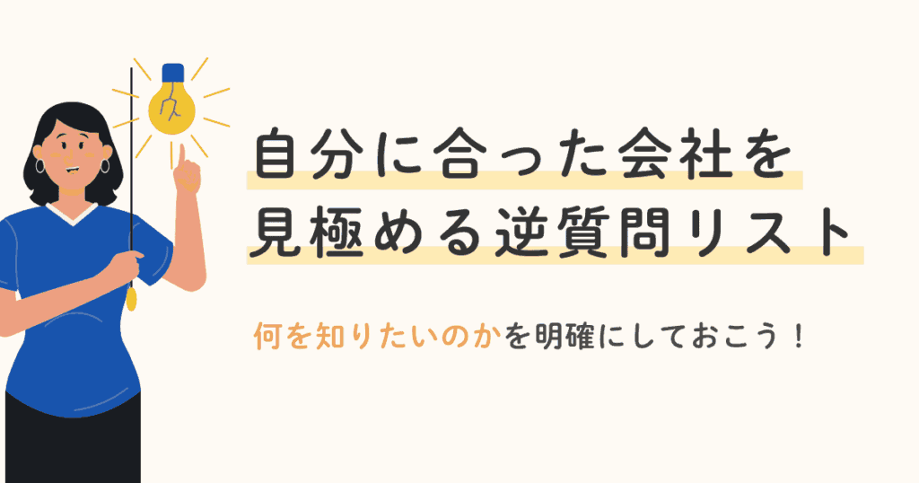 何に関心を持ち、どんな視点で物事を見ているかは、 質問のテーマ選びに表れます。 そして相手の回答から、会社が何を大切にしているかが分かり、 自分の価値観と合うかを判断できます。