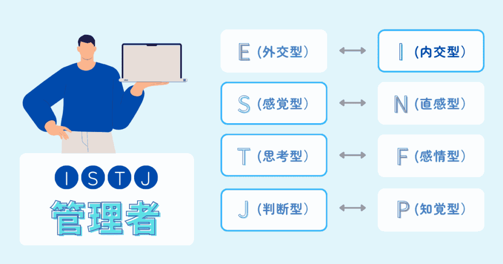 MBTI診断におけるISTJ型(管理者)は、内向的(I)・感覚的(S)・思考的(T)・判断的(J)という4つの特性を持つ、MBTIの16タイプの中でも特に誠実さと責任感の強いタイプです。