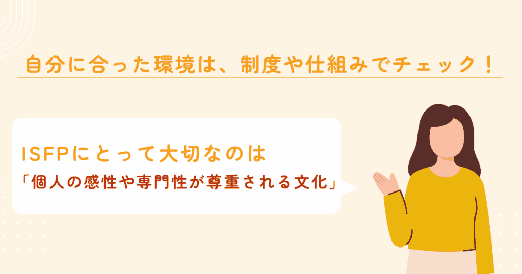 ここでは、ISFP型にとって相性の良い制度・サポート体制について紹介します。