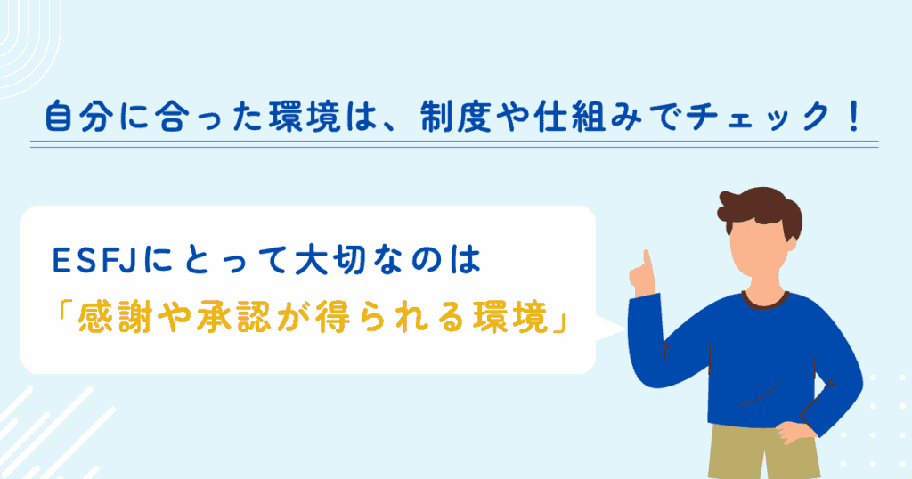 人の成長を支えることに喜びを感じるESFJ型は、自分自身もきちんと育ててもらえる環境かどうかが長期的な活躍を左右します。