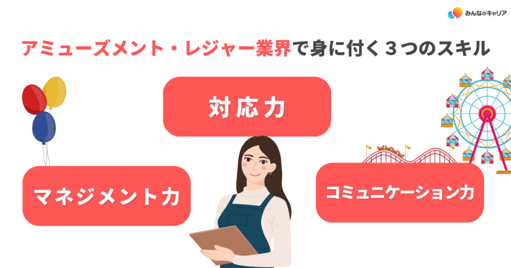 ここでは、職種が幅広いアミューズメント・レジャー業界で共通して磨かれる、3つの代表的なスキルを紹介します。
