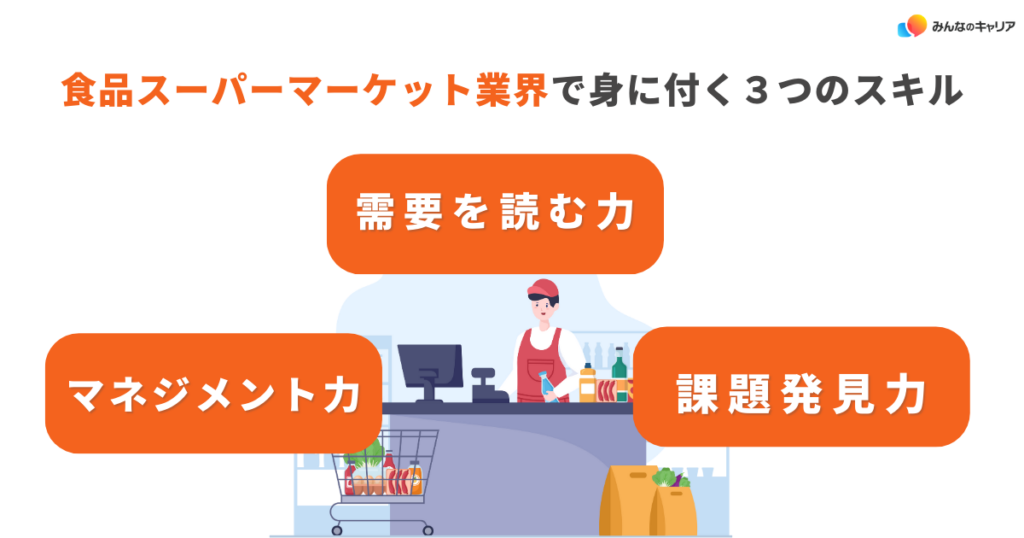 食品スーパーマーケット(SM)業界で身につく3つのスキル