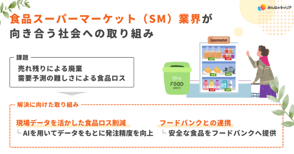 地域に根ざし、地元の人たちと直接的に関わり貢献できる一方、AIやネットスーパーの導入により先端技術にも触れられるのが食品スーパーマーケット(SM)業界の大きな特徴です。