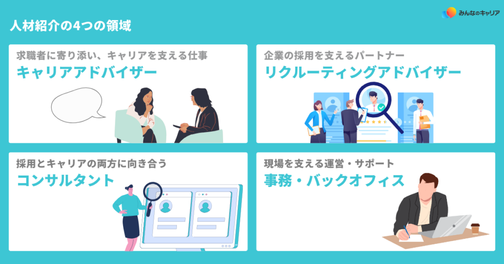 事務・バックオフィス は、アドバイザーやコンサルタントが円滑に業務を進められるよう、契約書の作成や請求処理、データ管理などを担当します。正確性が求められる業務ですが、人材紹介の流れ全体を理解できるため、将来的にアドバイザー職にキャリアチェンジする方もいます。