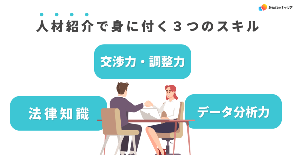 ●相手の本音を引き出すヒアリング力 求職者は、転職に対して不安や迷いを抱えていることが多いです。その気持ちを丁寧に聞き取り、本当に大切にしている価値観やキャリアの方向性を一緒に整理していく過程で、相手の本音を引き出す力が磨かれます。