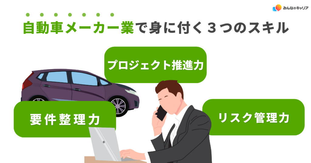 ここでは、自動車メーカー業界で身につく代表的な3つのスキルを解説します。