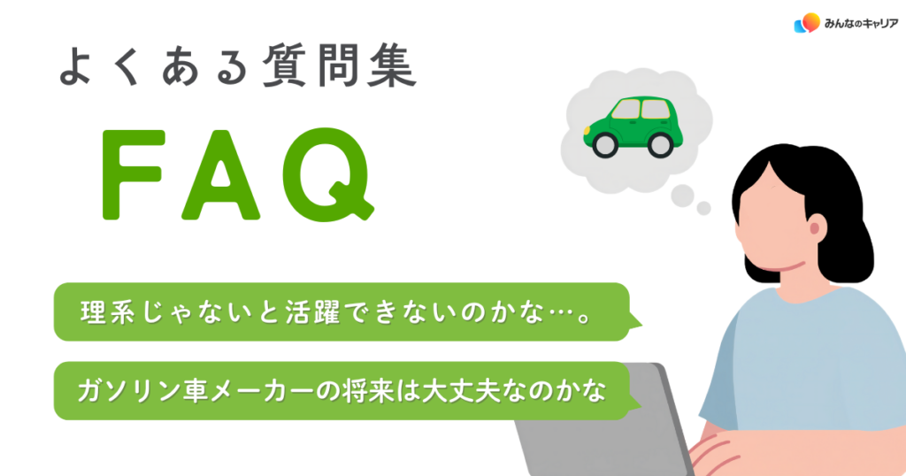 A.技術職(開発・設計など)では理系の知識が求められますが、営業、マーケティング、企画、購買、生産管理、品質、人事、経理など、学部や専攻を問わず活躍できる職種が多数あります。実際、多くの自動車メーカーでは文系出身者も数多く活躍しています。