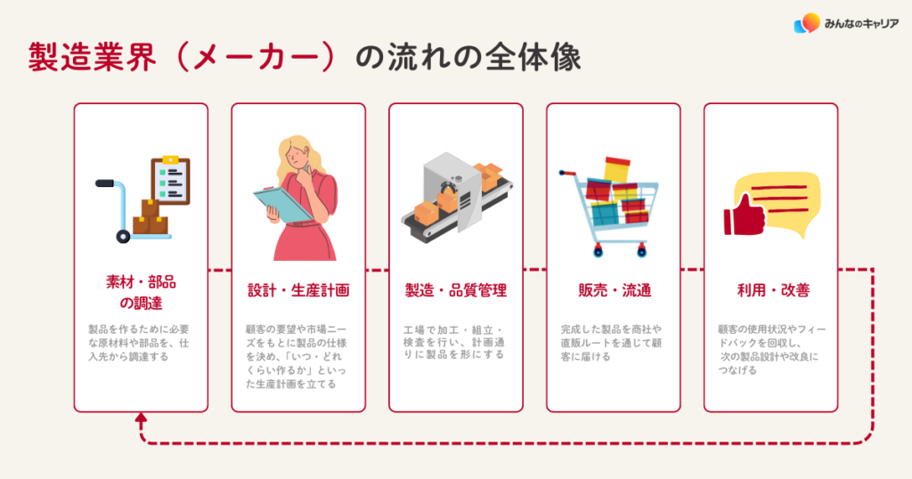 製造業界(メーカー)と聞くと、工場で黙々と作業する仕事というイメージがあるかもしれません。