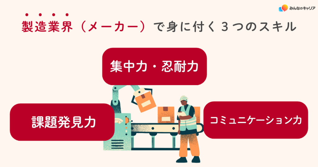 ここでは、製造業界で身につく代表的な3つのスキルを解説します。